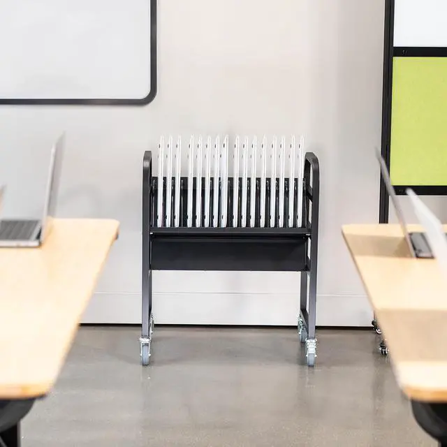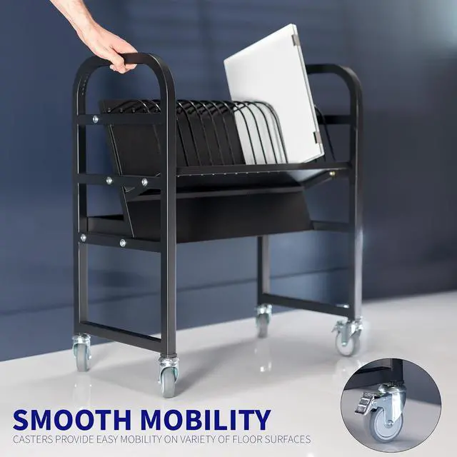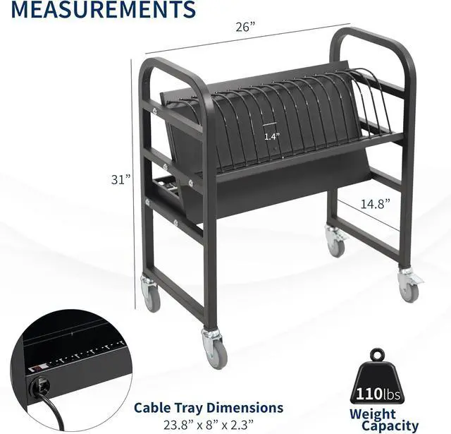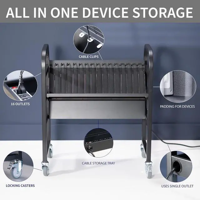 Holds 16 Devices: Store and charge up to 16 laptops and/or tablets (up to 14) in this easy-to-access open charging station. Only requires 1 wall outlet to keep your devices charged and ready to go