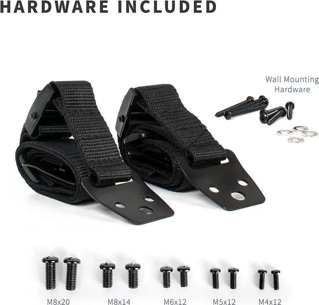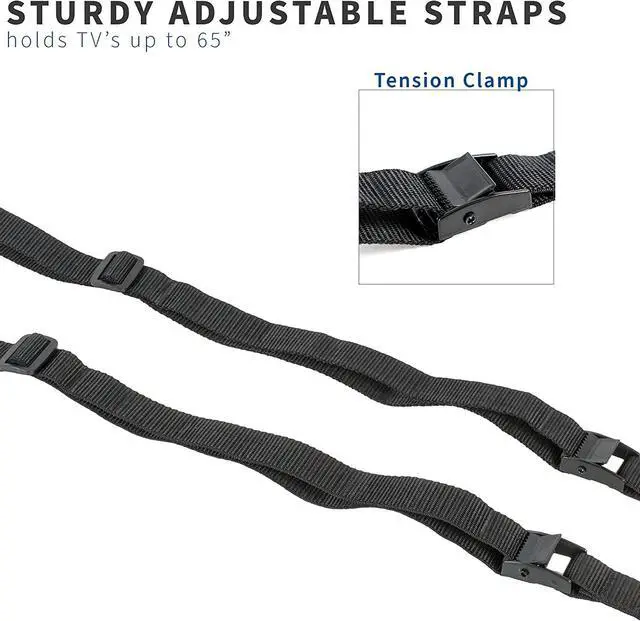 Heavy duty anti-tip cable straps from VIVO. STAND-SK02 is especially useful for flat screens within arm's reach or in areas of high traffic and is an essential tool in preventing tip-overs causing accidents and injuries. The dual cables work with any flat panel TV up to 65". The kit attaches your TV directly to wood stud walls, concrete walls, brick walls, or the entertainment centers underneath the TV, and the cables are adjustable using the tensioning clamp. All of this is done with the provided mounting kit which includes all necessary hardware and screws required for assembly.