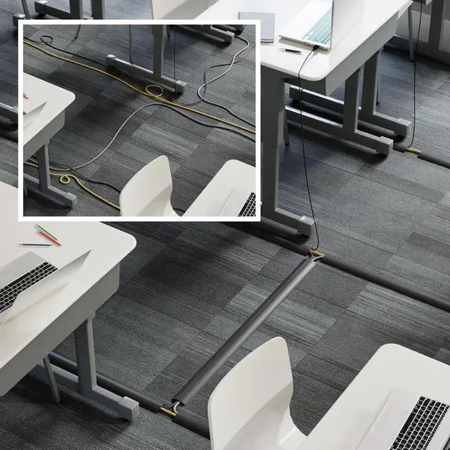 Use D-Line Floor Cord Covers to protect trailing cords and address a cable-trip hazard. Popular for use in offices, warehouses, events, exhibitions, classrooms, gymnasiums, retail, hospitality, gaming set-ups or anywhere trailing wires need to be covered.
