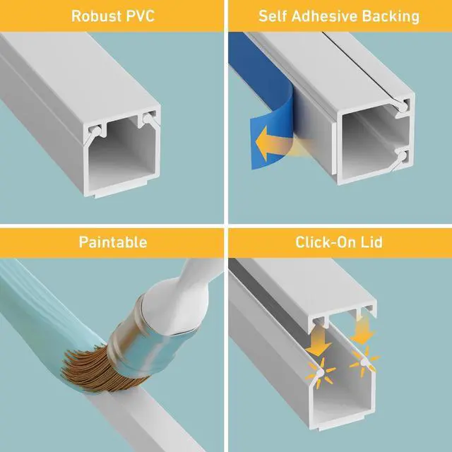 HIDE AND PROTECT SURFACE CORDS: with D-Line's robust 0.63in (W) x 0.63in (H) cord cover. By hiding surface cables, appearance improves, while wires are also protected.