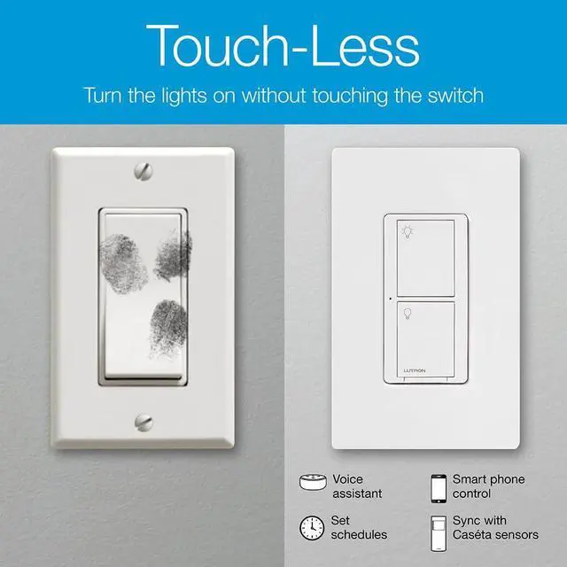 Use the smart switch to set your front porch light to turn on at dusk, ensuring your home is not dark when you return. Create schedules to turn lights on and off at set times that fit your everyday routines and activate custom lighting scenes with just the touch of a button. Schedule your patio lights to turn on every night as the sun sets. The geofencing feature allows you to never worry about forgetting to turn off the lightsset them to instantly turn off when you leave your home. (Caseta Smart Hub required for schedules and geofencing.) Caseta allows you to control your lights; use the free app, your voice (voice assistant and Caseta Smart Hub required), the wireless Pico remote, or the switch at the wall itself. The smart switch also allows you to control multiple styles of bulbs at oncecontrol your patio light and deck lights at once to transform your outdoor living space for your family and guests. For added convenience, use your smart switch with the included wireless Pico remote to turn your lights on or off with the simple touch of a button. Add an extra point of control and mount your Pico to virtually any surface with the included Pico wall mount bracket, no cutting holes or pulling wire required. Neutral wire required. Whether you need a reliable wireless light switch in English or prefer interruptor inteligente, this switch covers your needs. Compatible with Lutron switch setups.