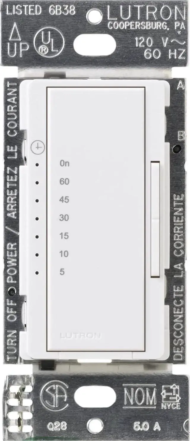 Timer allows exhaust fan or light to turn off automatically after running for five to 60 minutes