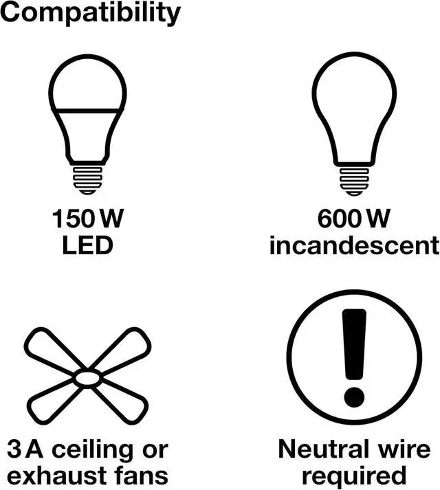 Use with 3A general-purpose or exhaust fans, incandescent bulbs, or halogen bulbs up to 600-Watts.All wire connectors provided are suitable for copper wire only
