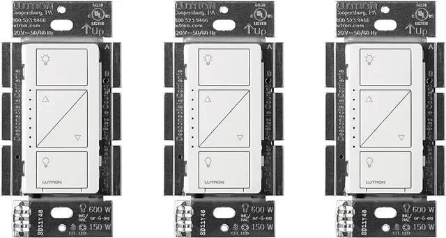 Experience the ultimate convenience with the Lutron Caseta Dimmer, a smart lighting device great for customizable illumination throughout your home. This LED dimmer switch offers smooth adjustment, letting you set the right light for reading, watching TV, entertaining, or casual dinners. Designed as a 3 way dimmer switch for LED lights, it works seamlessly for whole-home smart lighting control. This light switch with dimmer integrates with smart home gadgets, making it a favorite among tech-savvy homeowners and interior designers. Whether used as a mood lighting accessory or simply as an LED dimmer, it allows remote and voice-controlled operation using the Pico remote control (sold separately). Compatible with up to 600-Watt of incandescent or halogen and 150-Watt of dimmable LED or dimmable CFL bulbs, this 3 way smart switch supports automated lighting control and helps with energy savings. Coordinating wall plate and Pico sold separately.