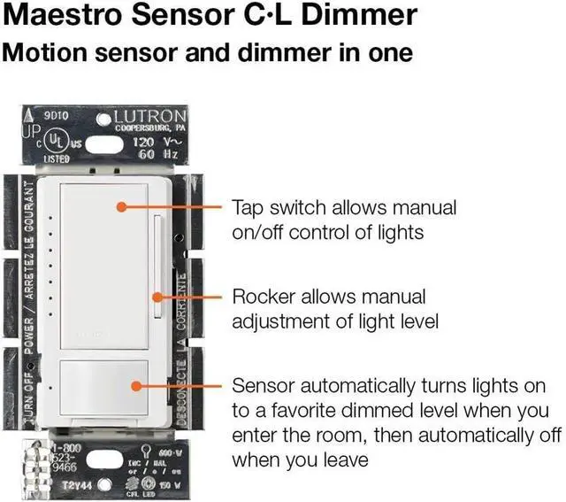Includes (2) Maestro LED+ Dimmer Switch/Motion Sensor Switches; coordinating Claro wallplate sold separately