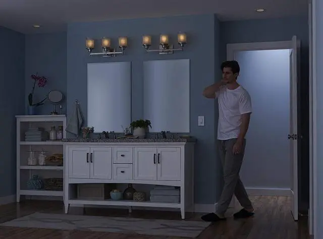 Motion sensor switch automatically turn lights on and off to favorite dimmed level when you enter or exit a room