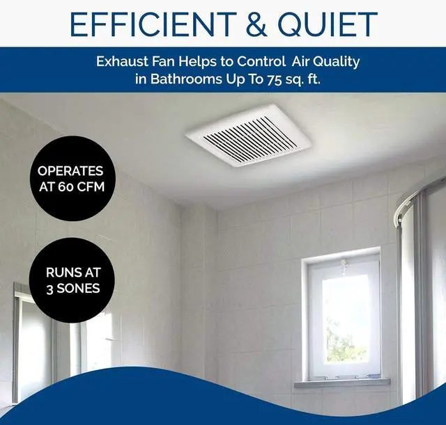 EFFICIENT: Bath fan operates at an efficient 60CFM to remove moisture from area. The motor is permanently lubricated and never needs oil-ing. If the motor bearings make excessive or unusual noise, replace the motor with the exact service motor. The impeller should also be replace