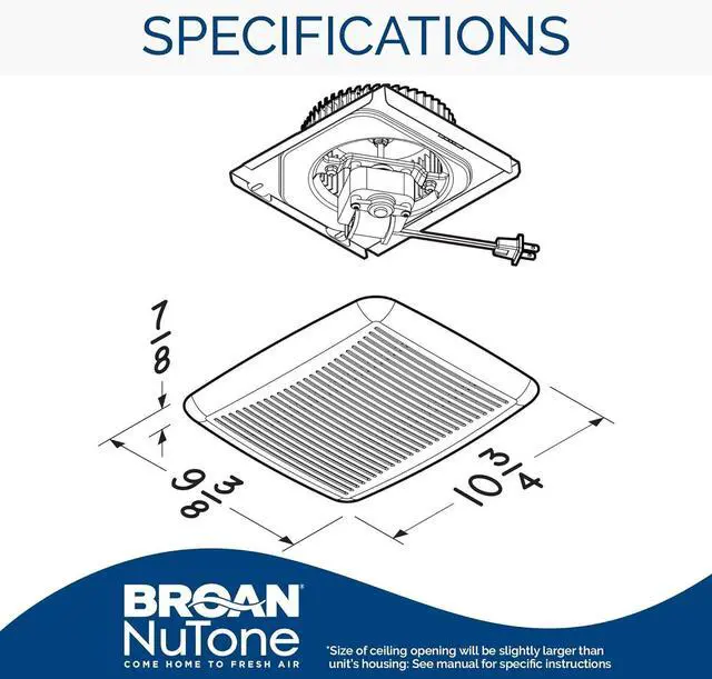 Replaces the Following Broan models EC50, ECF50, EC70, ECF70, ECH600. Grille Length 9.375 in