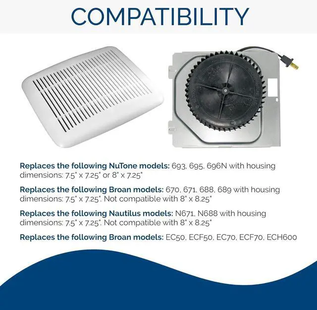 Replaces the following NuTone models 695C, 695CB, 696NC, 696NCB, 690AC