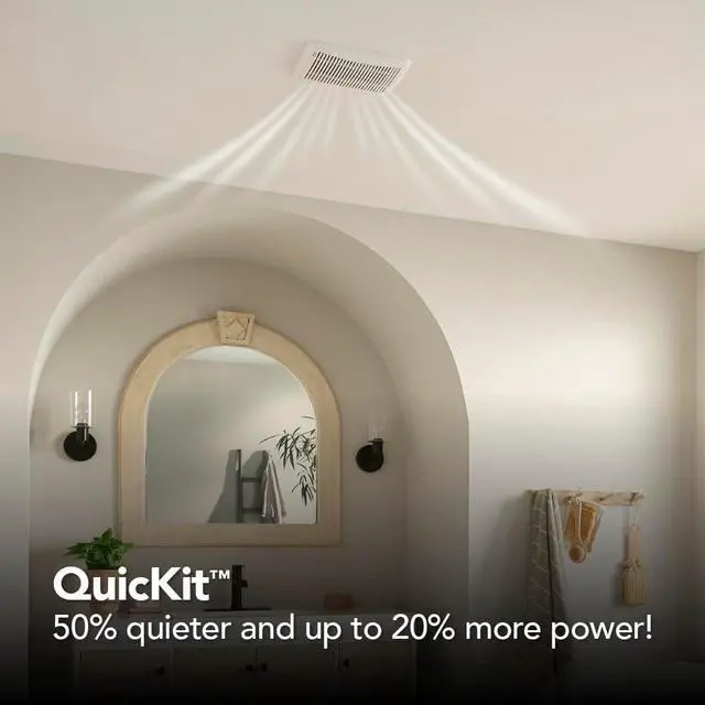 QUIET & EFFECTIVE: QuicKit technology reduces noise by up to 50% for fresher and cleaner air at 3.0 Sones, equivalant to the sound of a conversation