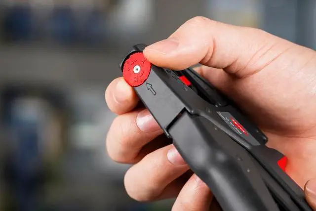 Cutting depth can be adjusted for different insulation by turning the red wheel