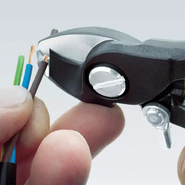 Multifunctional tool for working on NYM cable from 3 x 1.5 mm² to 5 x 2.5 mm² (cutting and stripping) Universal stripping area for both solid conductor cross-sections Reliable alignment of the Cable in the stripping area due to v-shaped blade geometry
