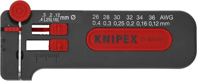 Precise stripping due to the tools gradual adjustment to the conductors diameter from 26 to 36 AWG Includes built-in wire cutter Small and compact design Adjustable length stop from 5/32" to 19/32" With locking device