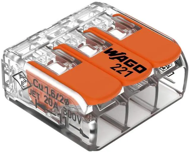Wago 221-413 Splicing Connector 3 Conductors 0.14-4 mm². Compact Design with Lever, Pack of 50