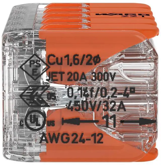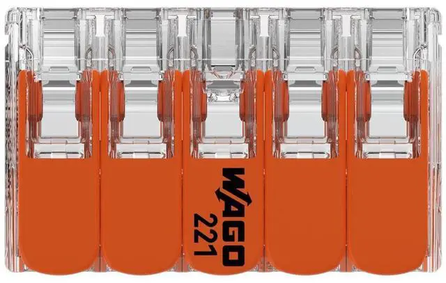 • Box contents: 15 x WAGO Compact lever clamp 221-420 | 10-conductor, WAGO connector terminals of the series 221 are available as 2, 3 and 5-conductor versions, transparent