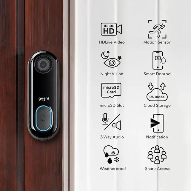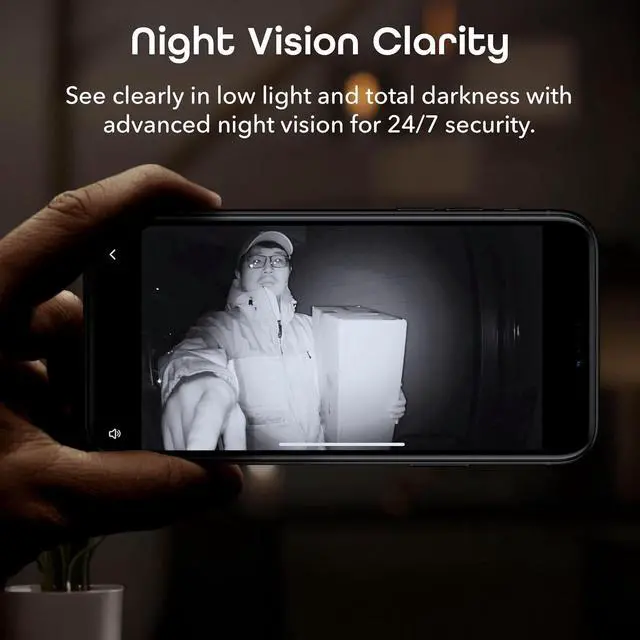 Check the front door at any time from your phone with the High Definition 1080p camera. The cameras advanced image technology provides complete front door security day and night. HD Camera Night Vision