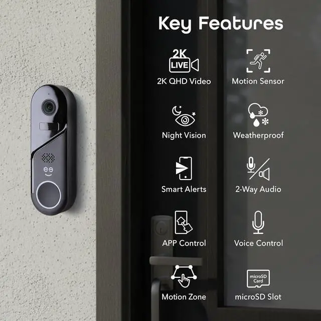 • Crystal Clear 3MP 2K Video: Monitor your home with 3MP (2304 x 1296) Ultra-HD resolution that delivers sharper details than standard 1080p. Identify visitors and packages with ease using the 107° viewing angle for total doorstep coverage.