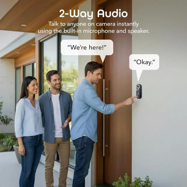 • Plug-in Chime Included: Never miss a visitor with the included AC-powered chime that plugs into any standard outlet, providing an audible alert inside your home in addition to instant smartphone notifications.