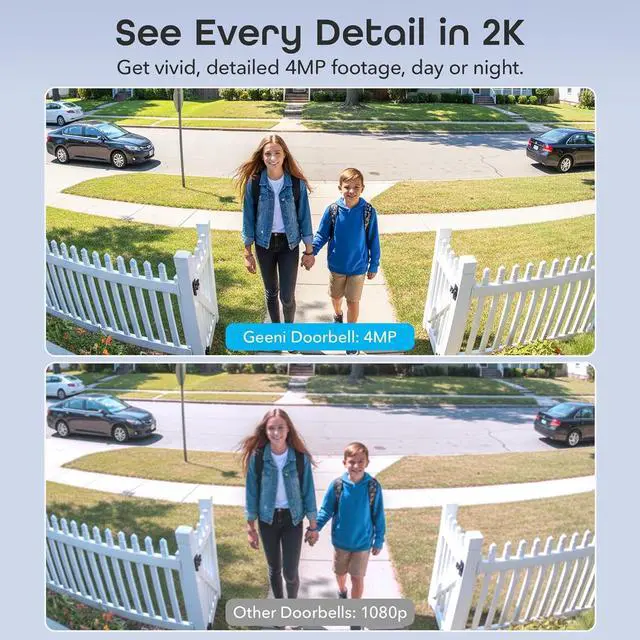 Crystal Clear 3MP 2K Video: Monitor your home with 3MP (2304 x 1296) Ultra-HD resolution that delivers sharper details than standard 1080p. Identify visitors and packages with ease using the 107° viewing angle for total doorstep coverage.