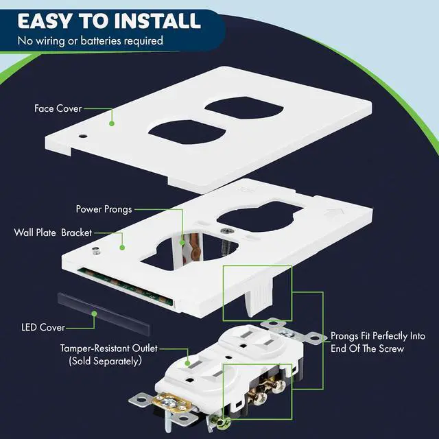 Energy-efficient LED is battery-free and requires very little power to operate compared to plug-in night lights; features a daylight sensor that automatically turns the LED on whenever the room is dark