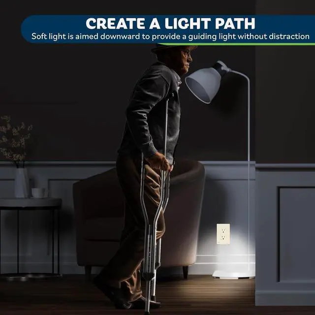 Energy-efficient LED is battery-free and requires very little power to operate compared to plug-in night lights; features a daylight sensor that automatically turns the LED on whenever the room is dark
