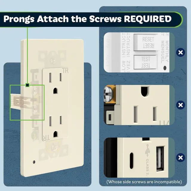 STANDARD DUPLEX ONLY; Compitable with standard ground down duplex outlet ONLY (see product image), NOT FOR GFCI or other styles; mid-size dimensions: H 4.88" (12.4cm) x L 3.11" (7.9cm)