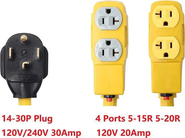 ONETAK NEMA 14-30P to 4 outlet Port 5-15R 5-20R 1.5 FT 10 AWG W/Current Protector 120/240V 30 Amp 4 Prong Male Plug to 120V 20 Amp 3 Prong Female Receptacle RV Generator Power Cord Adapter