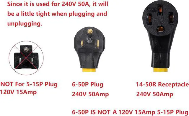NEMA 6-50P to 14-50R 240V 50 Amp 3 Prong Male Plug to 50 Amp 4 Prong Female Outlet Receptacle Generator Welder Dryer Power Cord Adapter