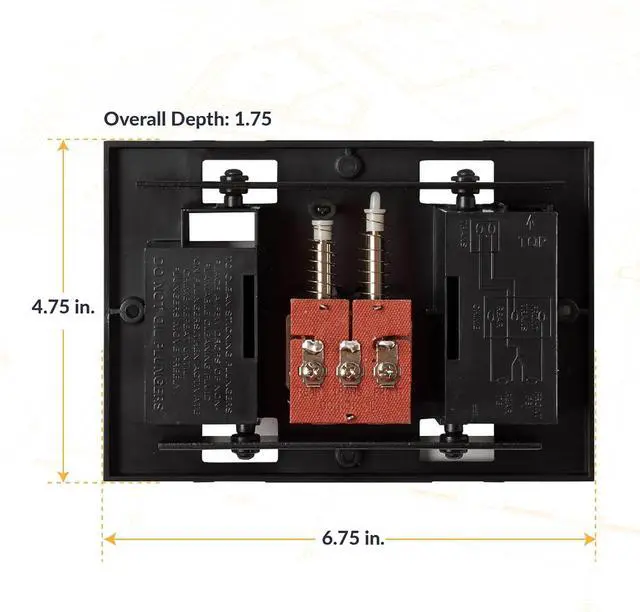 STANDARD DIMENSIONS: Our chime's cover is 9 L x 5" W; 6.75 L x 4.75 W x 1.75 H with overall depth of 1.75. It comes in a timeless white finish that blends with any decor.