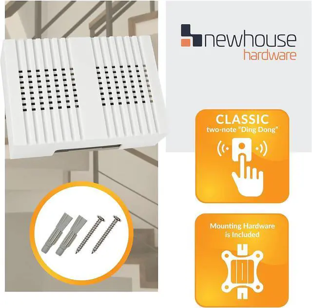 QUALITY: Doorbell chime maintains a texured white modern finish. Easy to install to your doorbell button and doorbell transformer. 2-year limited warranty.