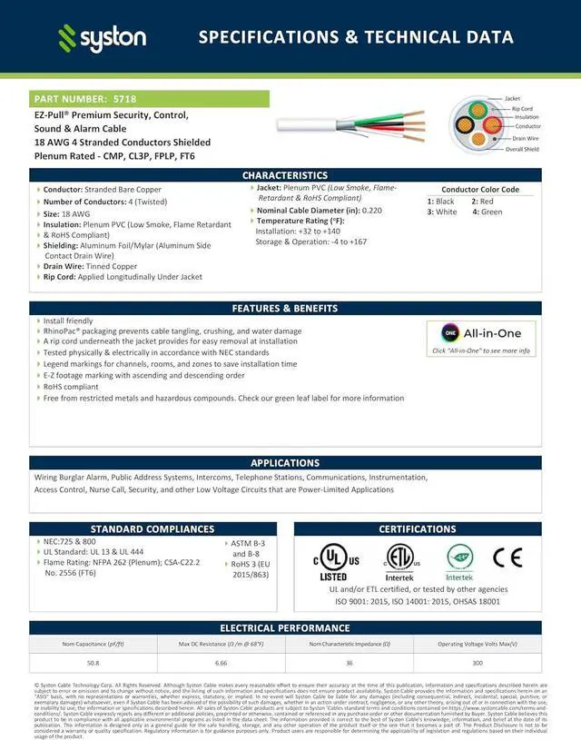 Multiple Applications: Wiring Security Burglar Alarm, Public Address Systems, Intercoms, Telephone Stations, Communications, Instrumentation, Access Control, Nurse Call, Security and Other Low Voltage Circuits that are Power-Limited Applications.