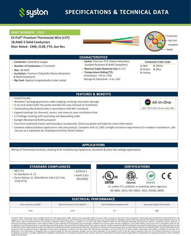 • Versatile applications including all kinds of HVAC situations such as wiring thermostat controls and heating and air conditioning equipment, plus doorbells and other low-voltage applications