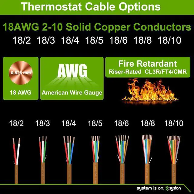 Syston Cable Technology 18/5 Thermostat Wire Brown 250 ft 18 AWG 5 Conductors Solid Copper Outdoor/Indoor Heat & UV Resistant UL/ETL CMR CL3R FT4 Residential Commercial and Industrial Rated