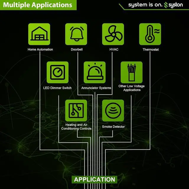 Versatile applications including all kinds of HVAC situations such as wiring thermostat controls and heating and air conditioning equipment, plus doorbells and other low-voltage applications