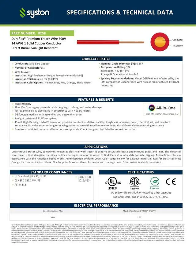 Can be installed underground, directly in contact with the soil, including in wet locations, so you can use it no matter your conditions.