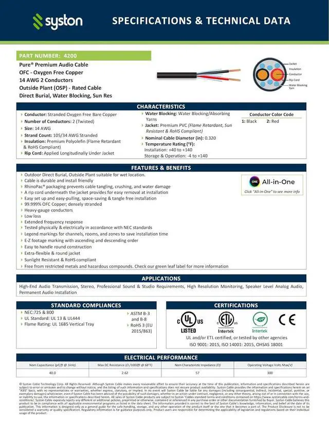 Weather and UV Resistant - Features a robust PVC jacket that resists moisture, UV rays, and temperature fluctuations, ensuring reliable performance in all weather conditions.