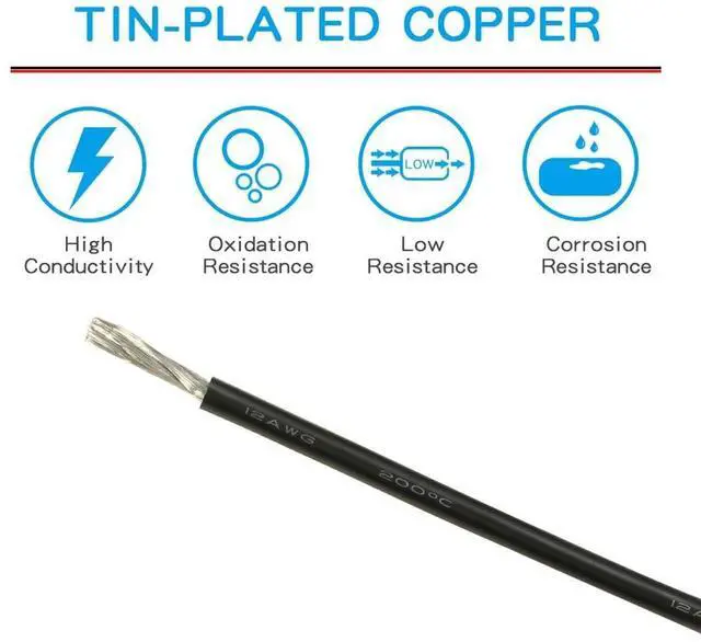High strand count copper core,12 AWG silicone stranded wire has 680 strands 0.08 mm tinned copper wire,the copper strands are tinned,protecting them from corrosion and making it easier to solder.