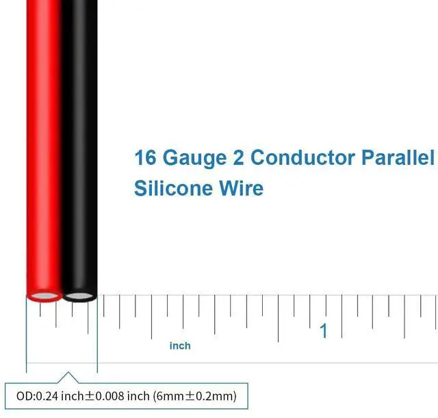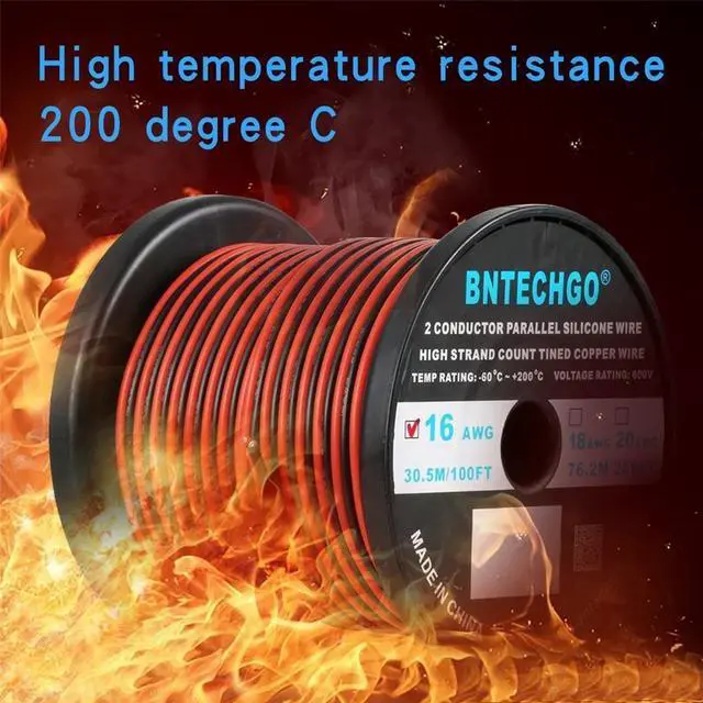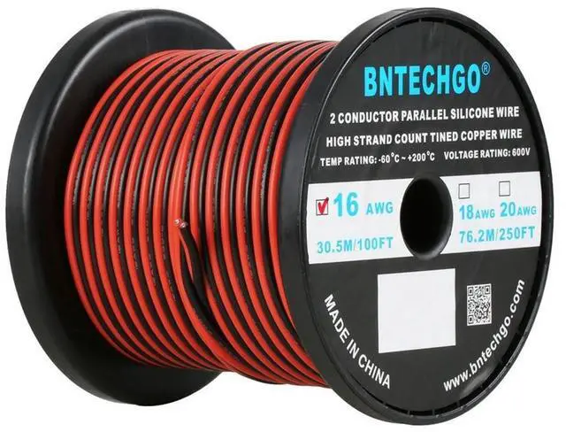 Package Included: 100 ft 16 gauge red black 2 conductor parallel silicone wire.Also available 12 gauge,14 gauge,16 gauge,18 gauge,20 gauge,22 gauge ultra Flexible 2 conductor parallel silicone wire.