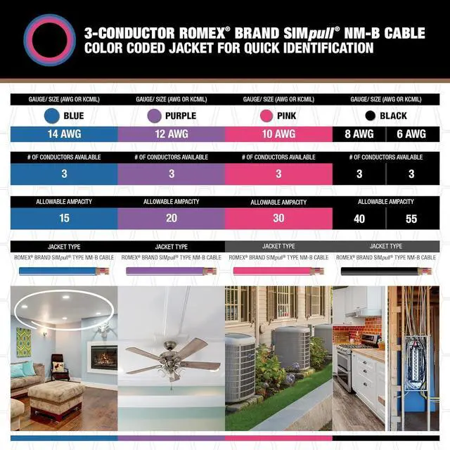 Romex Type NM-B Copper Building Wire is commonly applied in residential building wiring as a branch circuit for switches and outlets