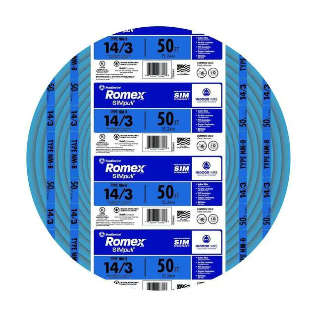 Southwire Romex SIMpull Wire, 14 Gauge, 3 Conductor, 50 Ft, W/G NM-B Cable, Blue, 63946922