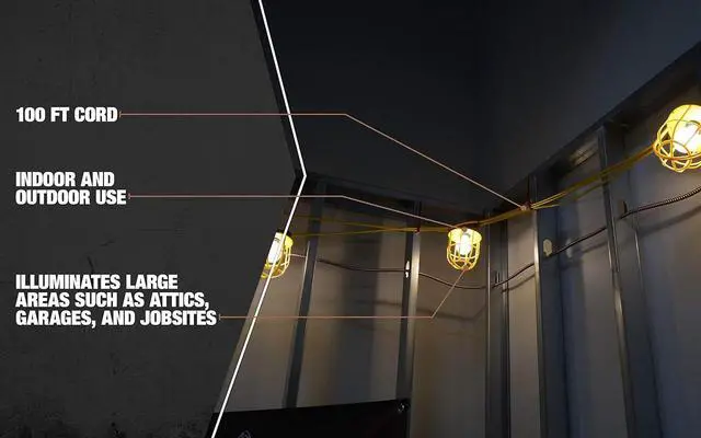 TEMPORARY indoor and outdoor illumination for attics, garages, unfinished construction, and other large areas