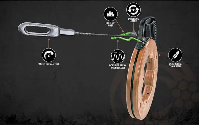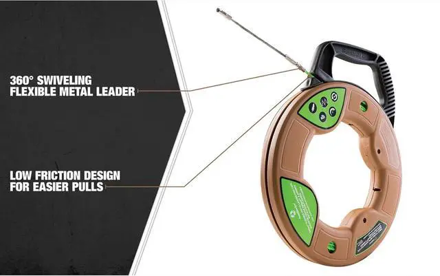 SPIRAL EXTRUDED POLYMER design does not rust and reduces the amount of effort required to push or pull the fish tape through EMT, IMC, rigid, or PVC conduit