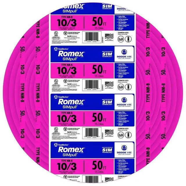 10 gauge; 3 conductors with ground; 50' per coil