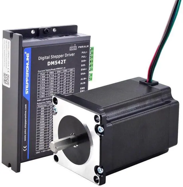 This CNC kit included: 1 x DM542T: Digital Stepper Driver 1.0-4.5A 18-50VDC for Nema 17, 23, 24 Stepper Motor 1 x 23HS32-4004S: Nema 23 Stepper Motor 2.4Nm(339.87oz.in) 4A 57x57x82mm 8mm Shaft 4 WiresC
