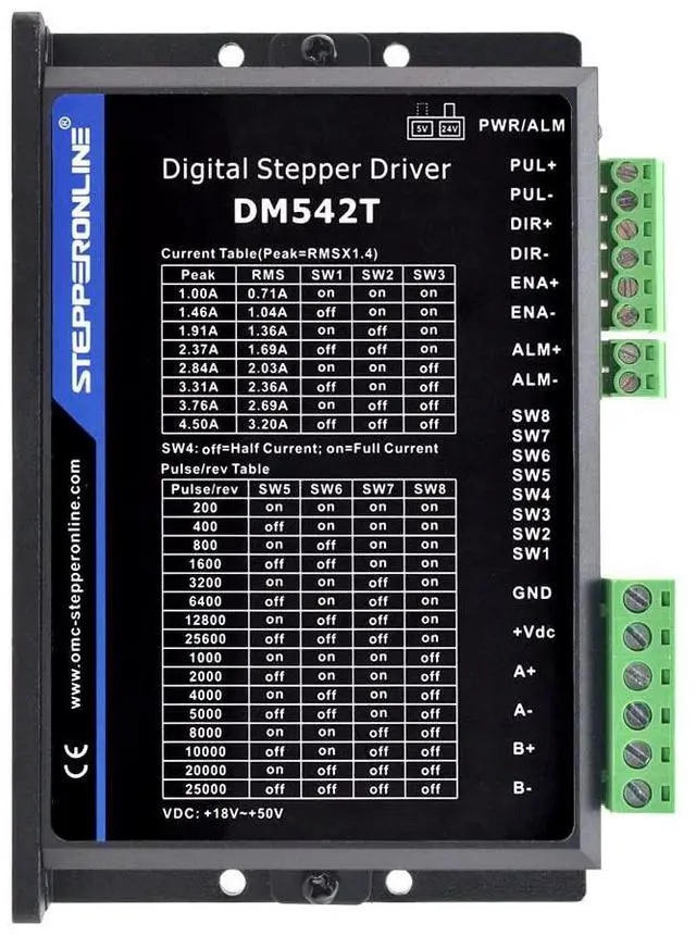 1 x DM542T: Digital Stepper Driver 1.0-4.5A 18-50VDC for Nema 17, 23, 24 Stepper Motor