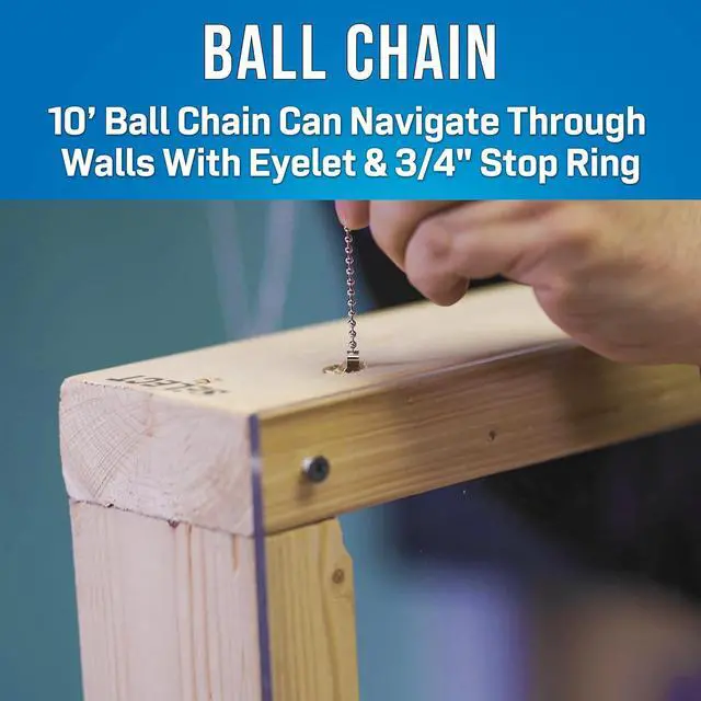 BALL CHAIN: 10 long ball chain can navigate through walls easily with included eyelet and 3/4" stop ring