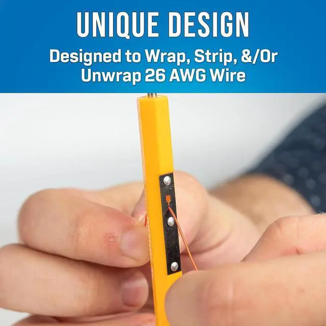 WSU wire wrapping tool wraps, unwraps and even strips the appropriate wire diameter with a unique built-in stripper blade