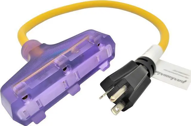 This unique adapter provides an easy way to gain three standard 125-Volt outlets from a 20 Amp 250-Volt NEMA 6-20 outlet.