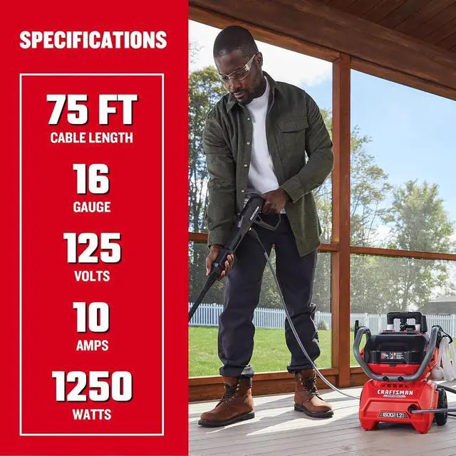 RELIABLE POWER: 3-prong grounded plug delivers 10 amps, 125 volts, and up to 1,250 watts; ETL certified for dependable home improvement and outdoor project performance