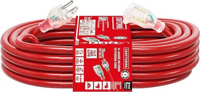 HEAVY-DUTY PERFORMANCE: 50 ft waterproof extension cord with flexible 14/3 SJTW contractor-grade jacket; designed for use in construction sites, garages, workshops, and outdoor landscaping